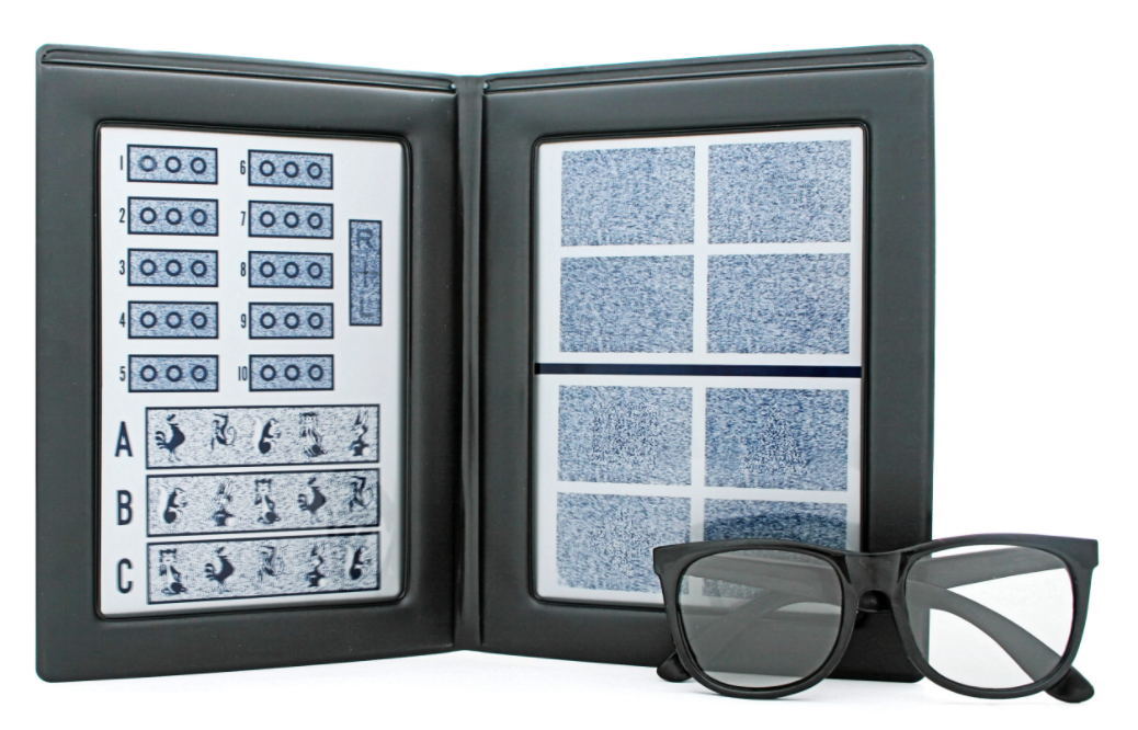 Tell patient, "We are going to test your ability to see depth. What shapes do you see in these boxes starting with the top left box"