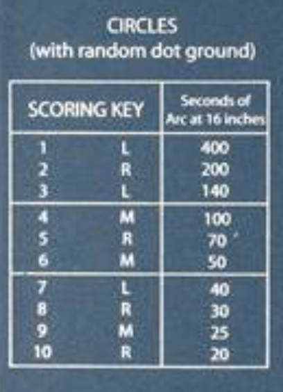 Tell patient, "One of the three circles may appear to pop out at you. Starting with 1 and going down, which circle [left, middle, or right] pops out at you?"